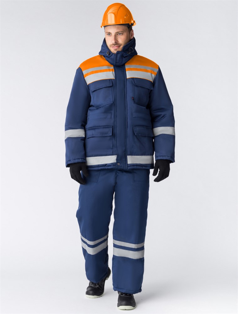 Костюм зимний Горизонт-Люкс (Смесовая, 210) брюки, темно-синий/оранжевый