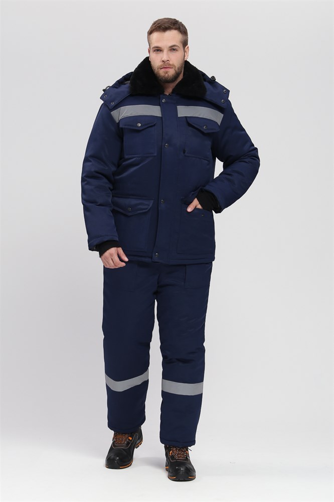 Утепленный зимний костюм "Мастер" для работы в условиях низких температур. В комплекте куртка и полукомбинезон со светоотражающими полосами.