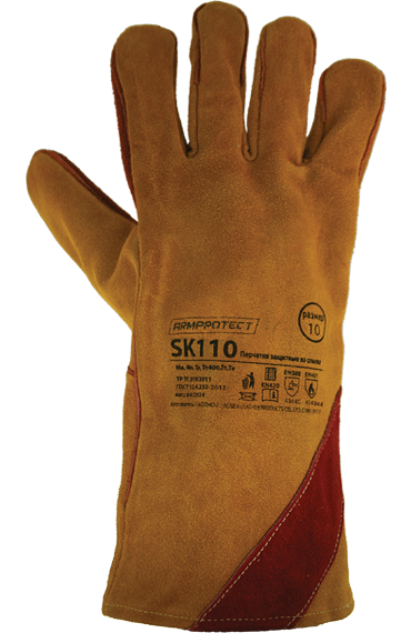 Цельноспилковые перчатки из мягкого воловьего спилка с удлиненной манжетой (раструб). Подкладка из джинсы и флиса. Швы усилены кожаной вставкой и прошиты прочной, тугоплавкой нитью. Конструкция манжеты (раструб) дает возможность быстро сбросить перчатку. Обеспечивает защиту рук от истирания, прокола и пореза, от искр и брызг расплавленного металла при сварочных работах.