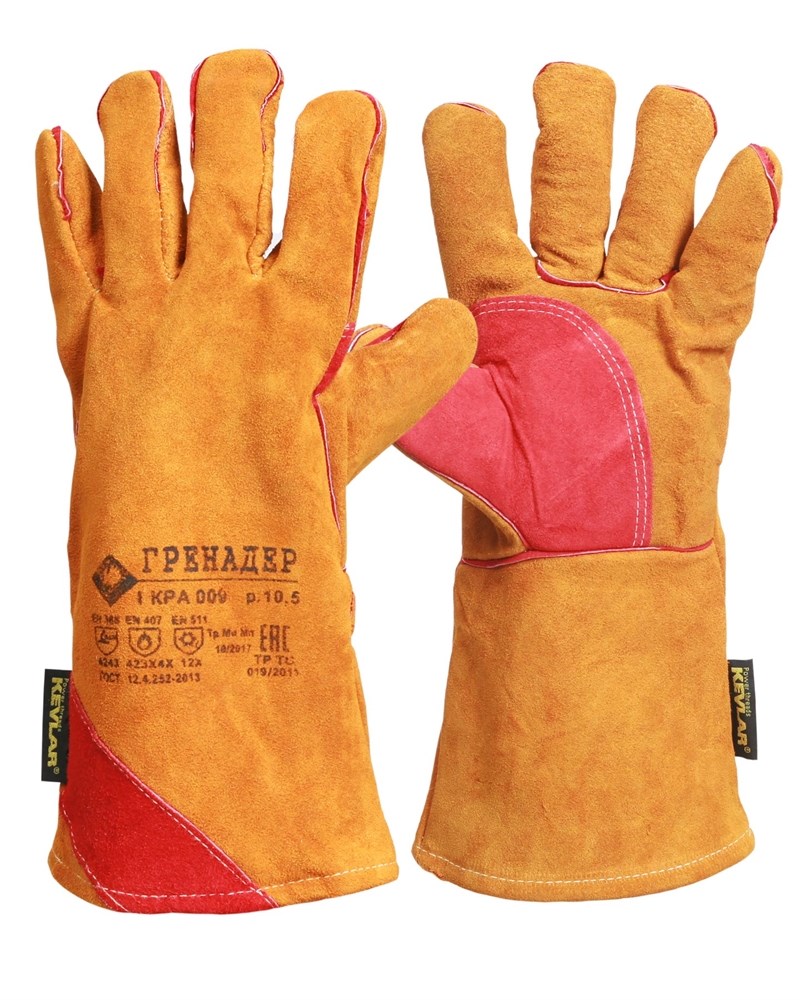 Краги утеплённые спилковые ГРЕНАДЕРнить Кевлар, иск. мех жёлт450 г/м2, дл.45 см, р.12(КРА009)