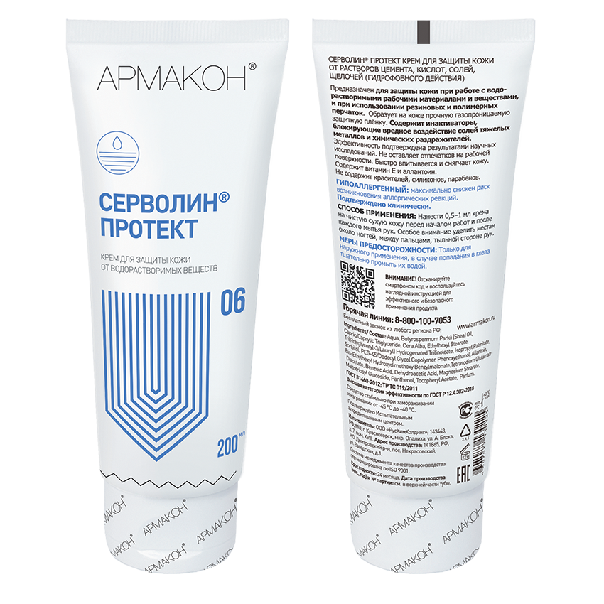 Крем СЕРВОЛИН ПРОТЕКТ гидрофобный 200 мл, (1189)