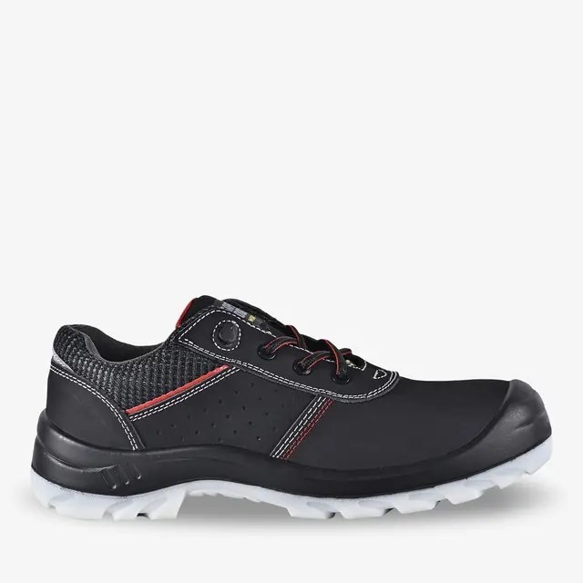 Описание модели: Кожаная дышащая обувь Нубук, черная, водоотталкивающая, без металлических элементов, композитный подносок, антипрокольная стелька SJ Flex, моделированная стелька, подкладка из нейлоновой сетки, антистатические свойства, поглощение удара в области пятки при ходьбе, светоотражающий задник, надежная шнуровка, нескользящая и не маркирующая пол подошва, S3, ПУ/ПУ подошва.