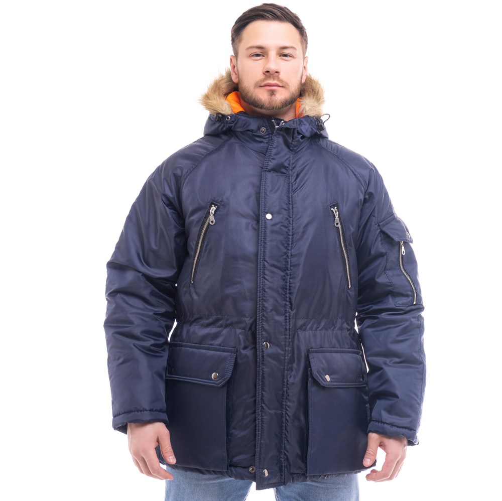 Куртка "Аляска" представляет собой удлиненную модель. Она оснащена ветрозащитной планкой на кнопках, которая обеспечивает дополнительную защиту от ветра.