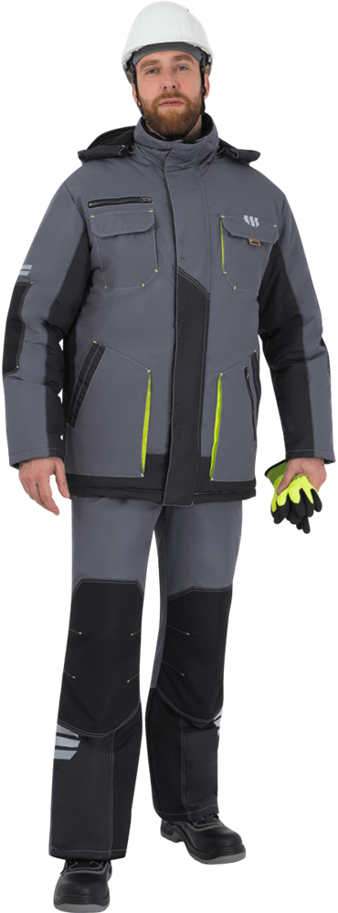 Куртка ЭДВАНС зимняя, серый-т.серый-лимонная отделка