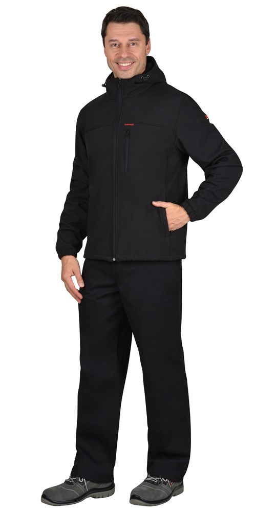 Куртка СИРИУС-АЗОВ с капюшоном черный софтшелл пл 350 г/кв.м