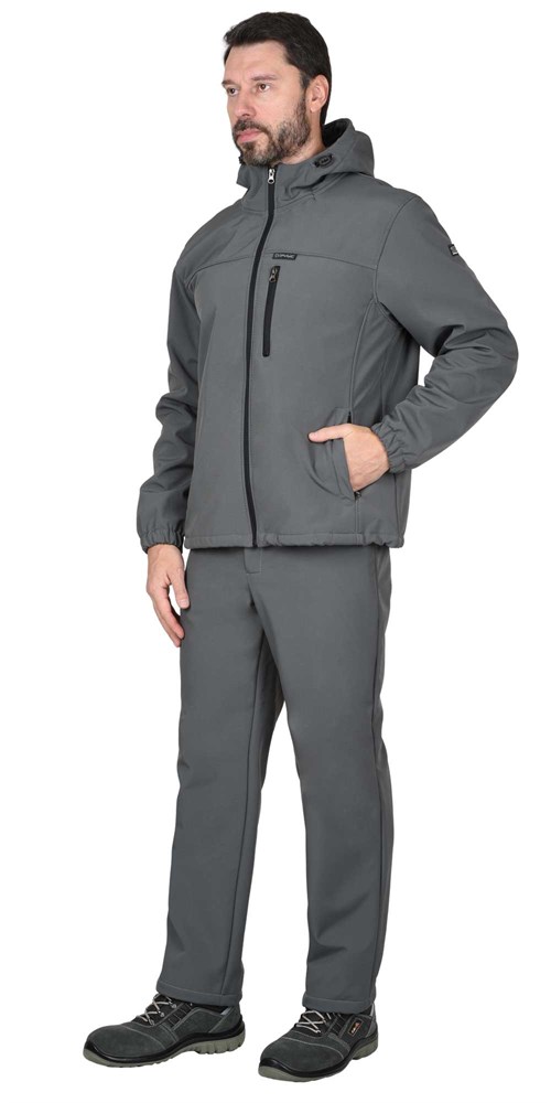 Куртка СИРИУС-АЗОВ с капюшоном серый софтшелл пл 350 г/кв.м