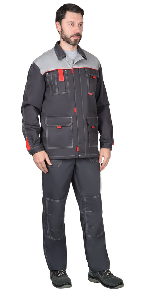 Куртка удлиненная, с центральной потайной застежкой на однозамковую тесьму-молния и декоративными патами из ткани отделки по борту, застегивающимися на потайную ленту контакт; с внутренней планкой; с отложным воротником пиджачного типа; с верхними накладными карманами с клапаном и хлястиком, застегивающимися на потайную ленту контакт; с нижними накладными карманами с клапанами, застегивающимися на потайную ленту контакт, Спинка со складками для свободы движения в средней части.