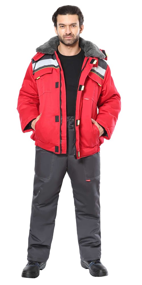 Куртка зимняя укороченная, с утеплённой подкладкой, с отложным меховым воротником, с центральной застёжкой на молнию и ветрозащитным клапаном, со съёмным утеплённым капюшоном, с верхними накладными карманами с клапанами на липучках, с нижними карманами в рельефных швах и карманом на подкладке. Рукава с налокотниками и внутренними трикотажными манжетами. В куртке предусмотрена СОП для обеспечения видимости при любом освещении.