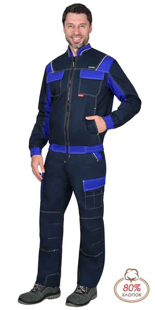 Куртка СИРИУС-КАРАТ-РОСС темно-синяя с васильковым, 80% х/б, пл. 260 г/кв.м