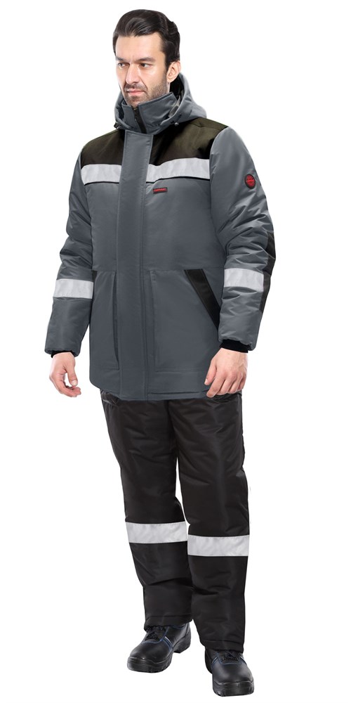 Куртка СИРИУС-КОМФОРТ зимняя, удлиненная темно-серая с черным и СОП