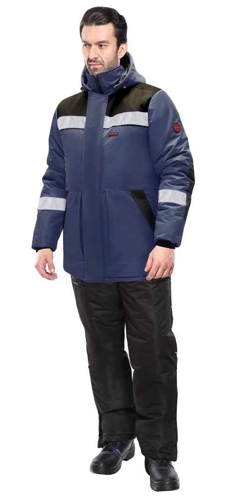 Куртка СИРИУС-КОМФОРТ зимняя, удлиненная темно-синяя с черным и СОП