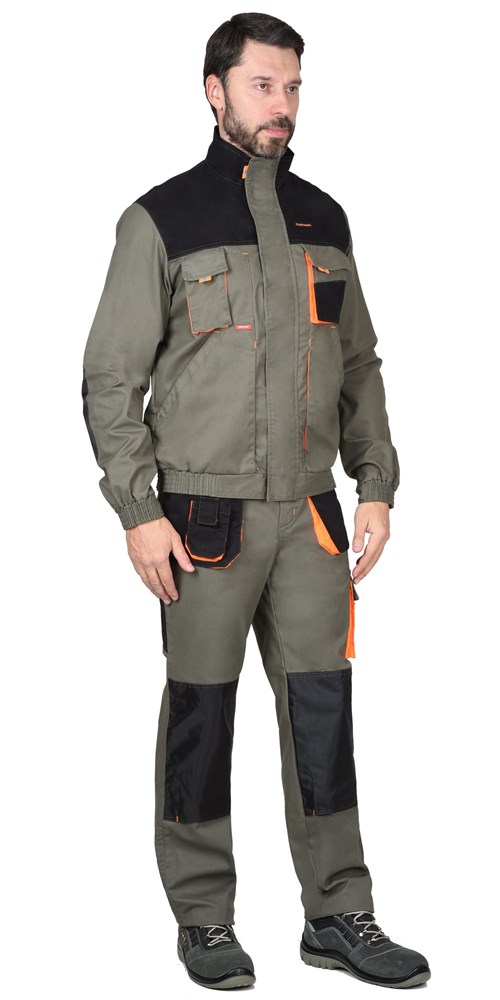 Куртка СИРИУС-МАНХЕТТЕН оливковый с оранжевым и чер. тк. мех. стрейч пл 260 г/кв.м