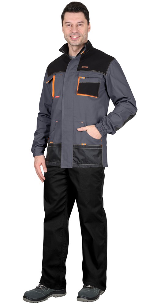 Куртка СИРИУС-МАНХЕТТЕН т.серый с оранж. и черным тк. стрейч пл. 250 г/кв.м