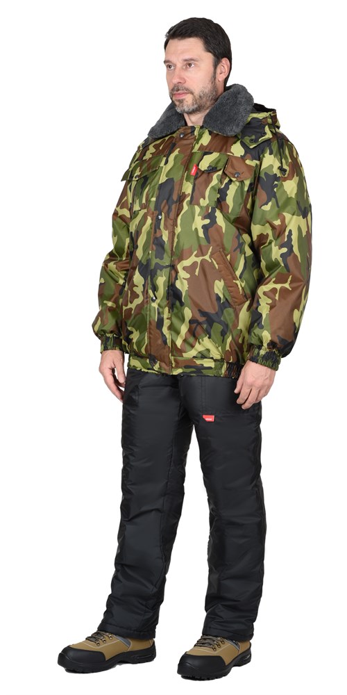 Куртка короткая, с притачной утеплённой подкладкой, с центральной застёжкой на двухзамковую тесьму-«молния» и внешним ветрозащитным клапаном, застёгивающимся на кнопки; с отложным воротником; с погонами, застёгивающимися на кнопку по плечевым швам и пристёгивающимся меховым воротником. Рукава с манжетами с эластичной лентой с хлястиком и липучкой. Капюшон съёмный. Куртка с притачным поясом, с эластичной лентой в боковых частях пояса.