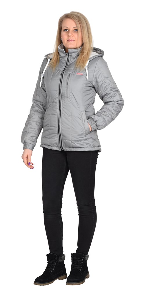 Куртка утеплённая стёганая, на подкладке "флис", со съёмным капюшоном, прямого силуэта, центральной застёжкой на тесьму "молния", воротником "стойка", верхним прорезным и нижними карманами с листочкой, рукава втачные с притачными манжетами, манжеты частично стянуты эластичной лентой.Ткань верха: "Дюспо", с ВО пропиткой, состав: 100% п/э, плотность 75 гр/м2, Цвет: стальной (светло серый) Ткань подкладочная: "Флис" пл.180 гр/м2, состав: 100% п/э. Утеплитель: "Синтепон" пл. 150 гр/м2 один слой.