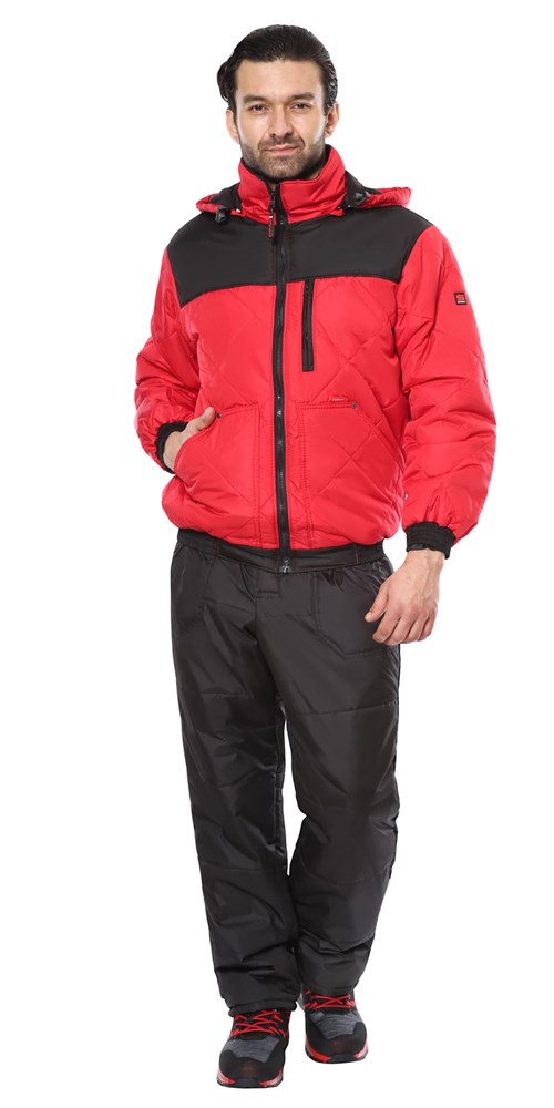 Куртка СИРИУС-ПРАГА-ЛЮКС короткая с капюшоном, красная с черным
