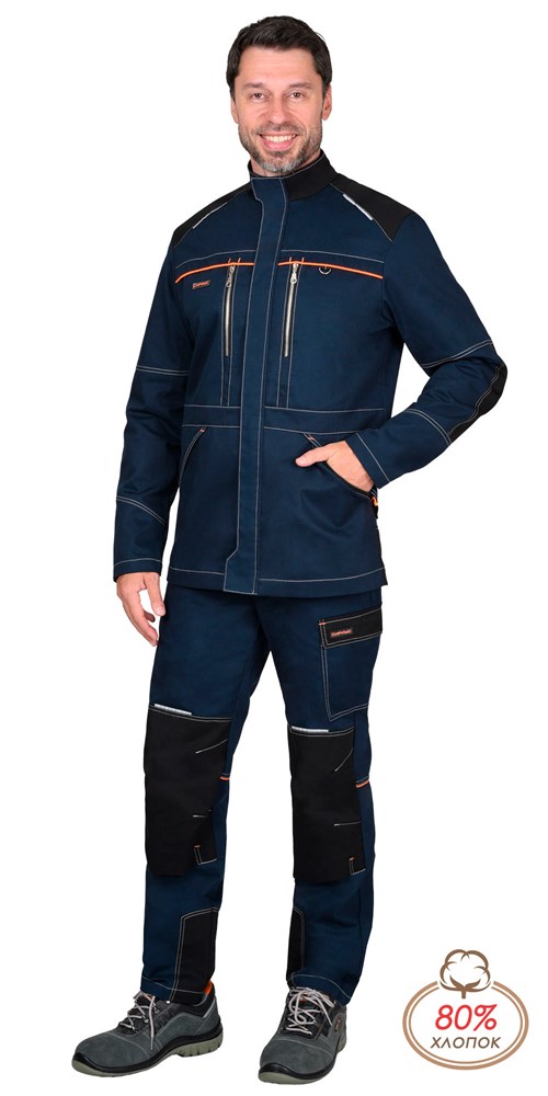 Куртка СИРИУС-ШАТЛ-РОСС удл. синяя с черным, 80% х/б, пл. 260 г/кв.м