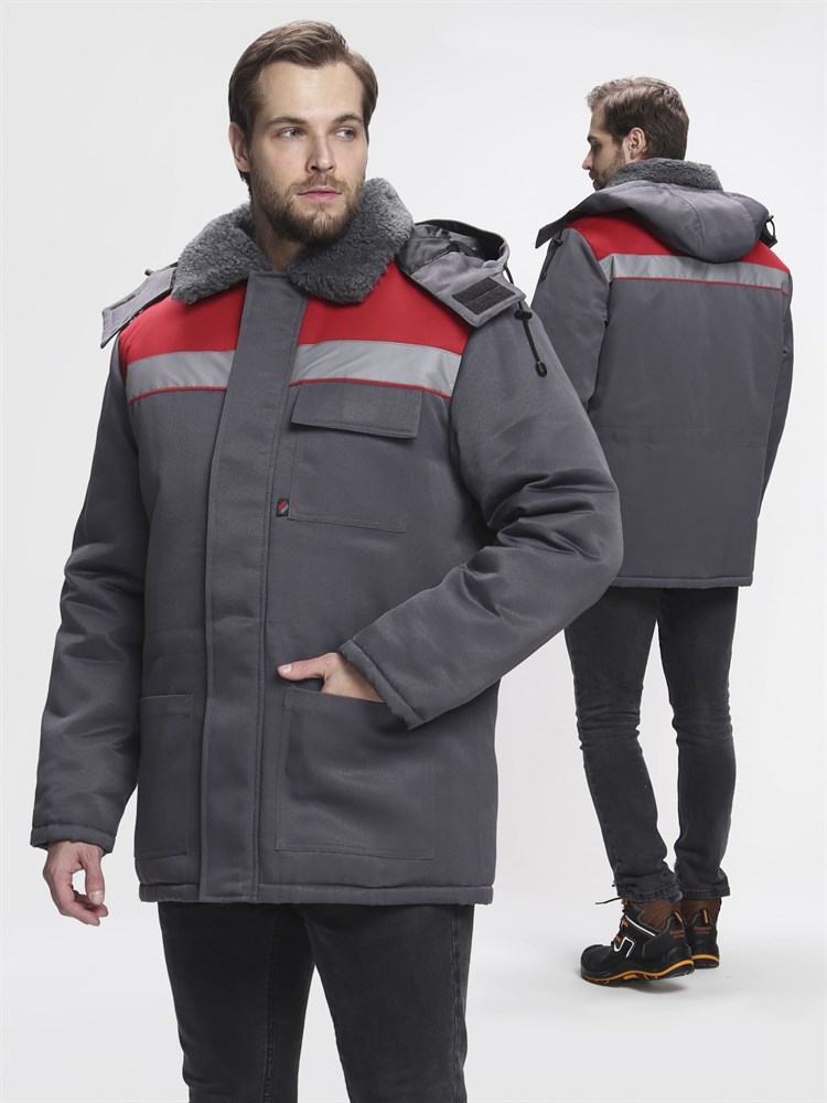Куртка зимняя для бригадира NEW (тк.Смесовая,210), т.серый/красный