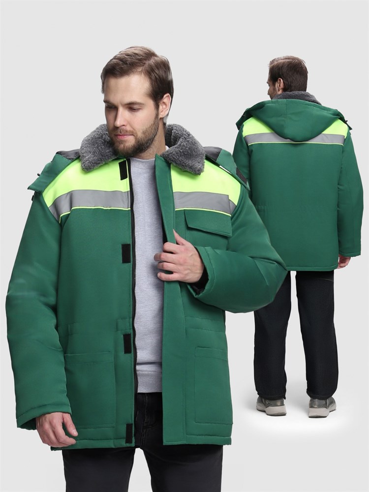 Куртка зимняя для бригадира NEW (тк.Смесовая,210), зеленый/лимонный