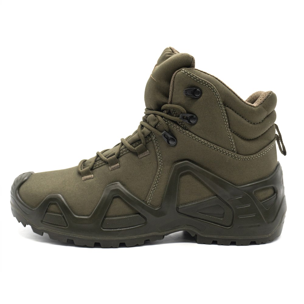Мужские трекинговые ботинки арт. 1002 представлены в двух цветах - "Olive Green" и "КМФ". Это облегченная, более дешевая версия всеми полюбившейся линейки Е-РRО. Верх изделия выполнен из высокопрочной ткани OXFORD. Однослойная подошва из ПУ обладает амортизирующими свойствами. Подлитой носок обеспечивает защиту от повреждений. Защитный рант с выборками для облегчения веса проходит по всему периметру и создает узнаваемый образ. Кроме основных функций, рант дает дополнительное сцепление с поверхностью, например, при движении вдоль склона. Высота среднего ботинка 14.5 см, этого хватает для отличной фиксации голеностопа. Все детали прошиты двойным швом, все швы сделаны крайне аккуратно. На пятке есть петелька, облегчающая надевание. Язычок с защитным клапаном исключает просачивание воды и попадание посторонних предметов внутрь.