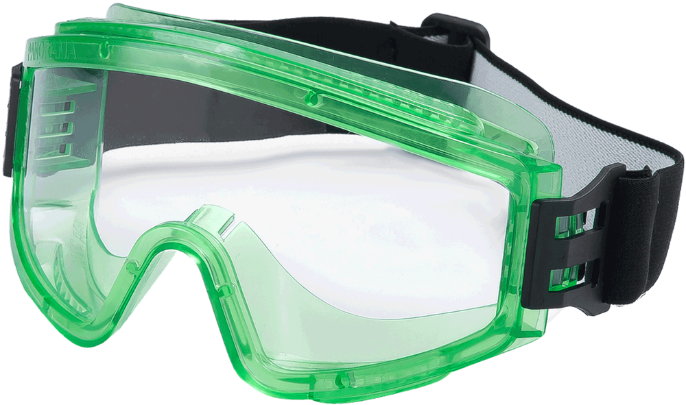 • Очки плотно прилегающие, современные, комфортные и удобные с высокой степенью защитных свойств с панорамным защитным стеклом из оптически прозрачного материала Plexiglas CE и мягким корпусом из ПВХ пластиката с широкой полосой обтюрации обеспечивают защиту глаз от воздействия твердых частиц с кинетической энергией до 3,0 Дж, УФ-излучения до l=350 нм и панорамный обзор при полном отсутствии искажений.