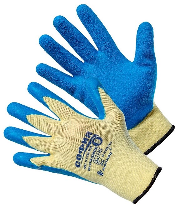 Трикотажные перчатки с пенорезиновым покрытием для защиты от механических воздействий и общих производственных загрязнений. Перчатки представляют собой бесшовную трикотажную основу, на которую в области ладони и кончиков пальцев нанесено резиновое покрытие. Основа перчаток изготовлена из волокон, обладающих большой механической прочностью и эластичностью, что позволяет перчаткам принимать форму кисти пользователя. В состав полиэфирного волокна добавлены антимикробные модифицированные полипропиленовые волокна (не менее 40 %), являющиеся бактериостатическим компонентом. Рельефное резиновое покрытие на основе натурального латекса обеспечивает защиту ладони пользователя от механических воздействий (истирание, порез, прокол), влаги и общих производственных загрязнений, а также обеспечивает превосходный захват предметов с любых поверхностей.