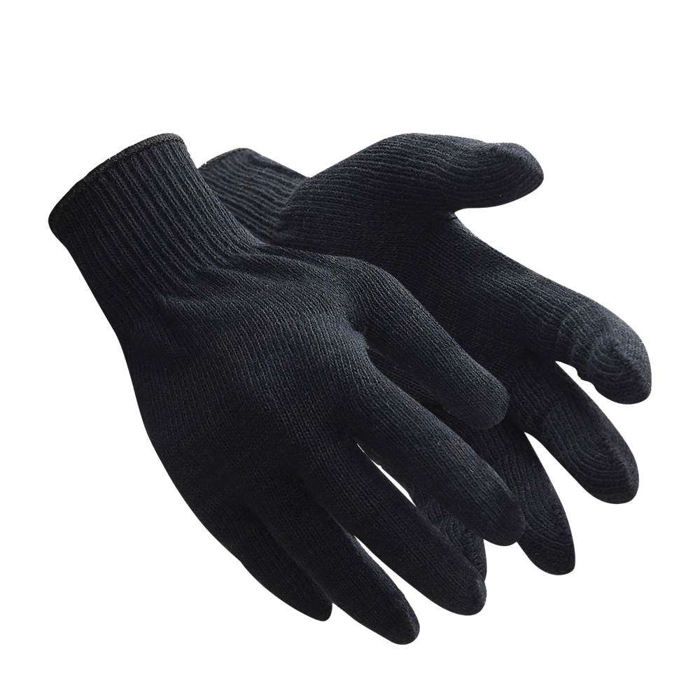 Тонкие трикотажные перчатки из полушерстяной пряжи для защиты от механических воздействий и общих производственных загрязнений.