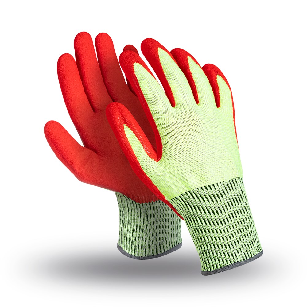 Частичное покрытие из нитрильных микрогранул (песчаное) — надежный захват предметов в агрессивных средах (Нс, Нм); высокий уровень защиты от истирания