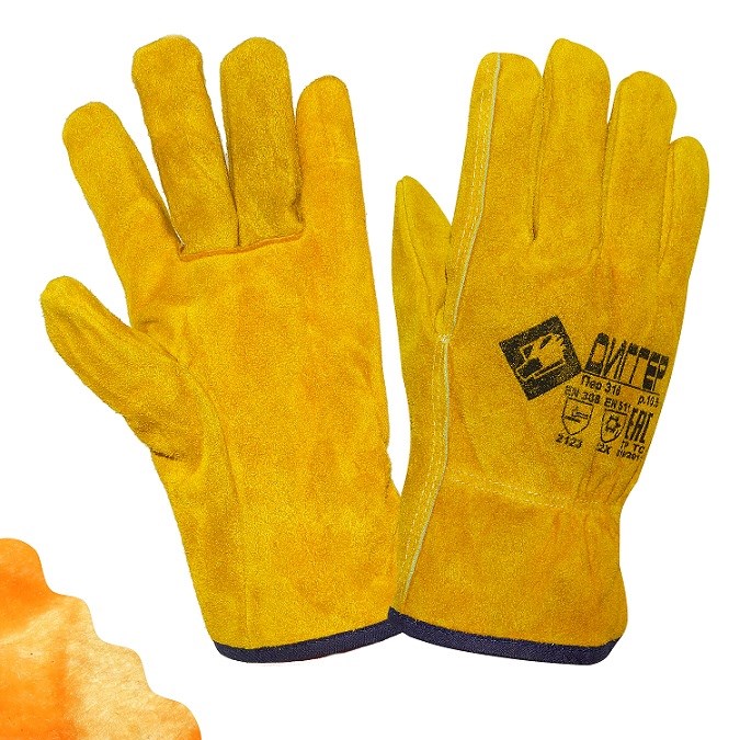 Перчатки ДИГГЕР цельноспилковые желтые утепленные (ПЕР316)