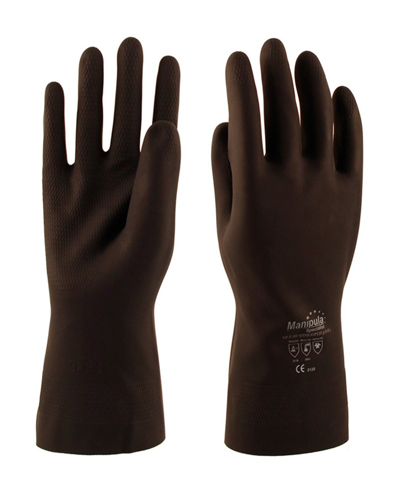Перчатки ХИМОПРЕН (NP-F-09) – химическая стойкость к широкому спектру агрессивных жидко-стей и эластичность до -20 °С – предназначены для защиты рук от кислот и щелочей. Герметичные перчатки из 100% неопрена, стойкие к кислотам и щелочам высоких концентраций, органическим растворителям (этанол, бензин), растительным жирам, нефти и нефтепродуктам (минеральным маслам). Дополнительная стойкость к сложным эфирам (этилацетат) и насыщенным углеводородам (Н-гептан). Неопрен не вызывает аллергических реакций, увеличивает стойкость к механическим воздействиям, а также значительно расширяет защиту от химических веществ. Сохраняет эластичность и комфорт при температуре до -20 °С. Хлорирование поверхности для увеличения механической прочности. Текстура рабочей поверхности «соты» обеспечивает отличный сухой и влажный захват. Плотное хлопковое покрытие на внутренней поверхности для удобства надевания и использования, а также комфортной термоизоляции. Для предотвращения возникновения микробной среды и устранения неприятных запахов после производственного процесса перчатка прошла антибактериальную обработку Sanitized Actifresh®.
