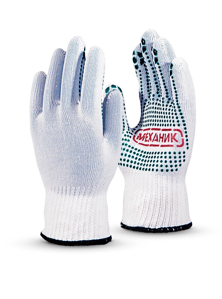 Перчатки МЕХАНИК (MG-113), нейлон/хлопок, SlipGrip, оверлок, цвет белый