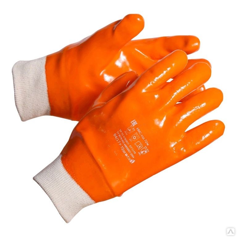 Перчатки Нефтеморозостойкие (НМС) с морозостойким поливинилхлоридным покрытием, универсальные защитные на трикотажной основе из хлопчатобумажной пряжи (100%) с утеплителем «Джерси», с антибактериальной пропиткой обеспечивает рукам максимально возможный уровень комфорта и абсорбирования влаги. Эластичная трикотажная манжета. Перчатки для защиты от механических воздействий (истирание, порез, прокол, разрыв); от химических факторов: от сырой нефти, от нефтепродуктов, от растворов кислот концентрацией до 50%, растворов щелочей концентрацией до 50%, антиэлектростатические. Могут комплектоваться утепляющим полушерстяным вкладышем. Возможно использование в холодное время года.