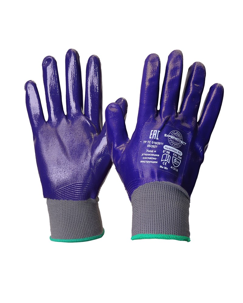 Перчатки из 100% нейлона, 13 кл. вязки, цвет основы серый, полное нитриловое покрытие фиолетового цвета. Отличная защита от истирания и разрыва. Повышенная стойкость покрытия к маслам, нефтепродуктам, кислотам и щелочам. Отличная тактильная чувствительность, широкий диапазон применения. Цветной оверлок.