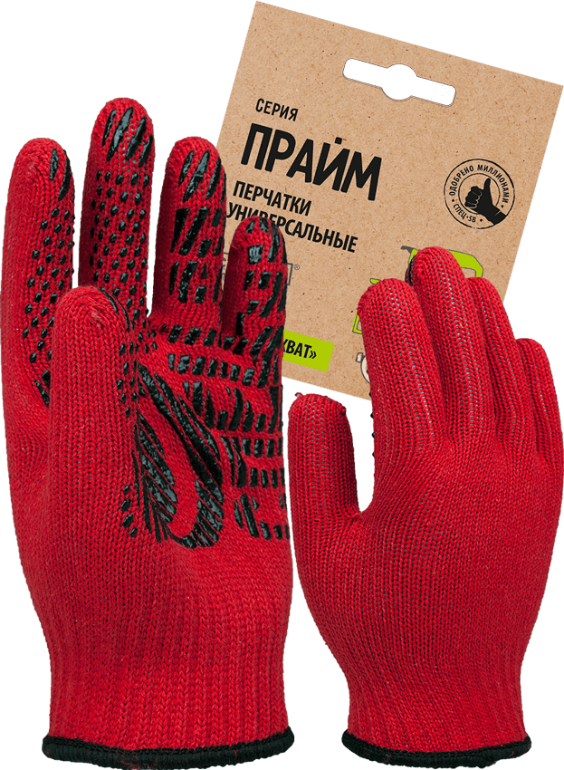 Перчатки трикотажные с ПВХ Прайм, красный, (Пер 044Я), картонный ярлык
