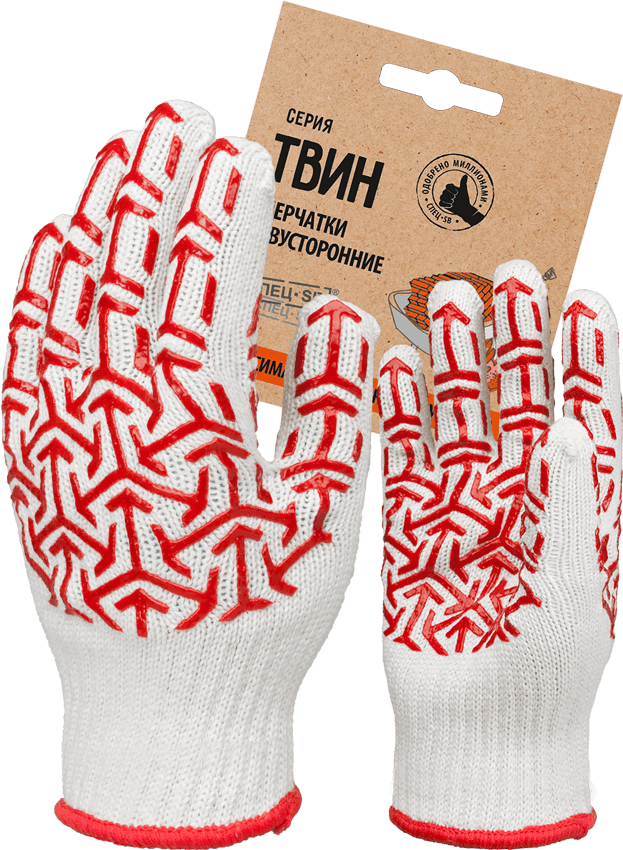 Перчатки трикотажные с ПВХ "СТРЕЛА" белый/ красный, (Пер 052Я), картонный ярлык