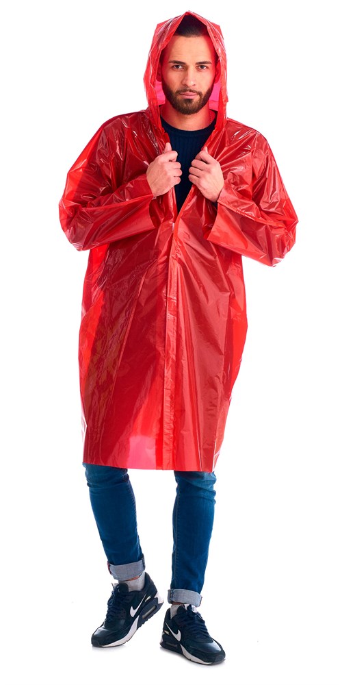 Плащ-дождевик СИРИУС-ЛЮКС на липучке ПВД 80 мкр. пропаянные швы, красный