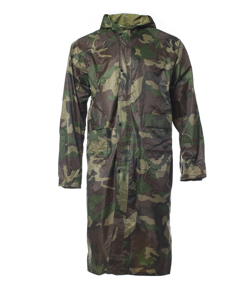 Плащ изготовлен из износоустойчивой нейлоновой ткани и обладает водонепроницаемыми свойствами. Полностью проклеенные швы , а также ПВХ напыление специально предназначено для создания максимальной герметичности изделия. Капюшон плаща убирается в воротник и снабжен дополнительной кулисой для регулировки объема. Манжеты на резинках. По бокам изделия расположены накладные карманы с влагозащитными клапанами.