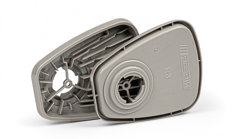 Держатель RESPIK® R3 создаёт платформу для крепления аэрозольных фильтров RESPIK® R11, R25, R35 к маскам и полумаскам совместно с держателем R1.