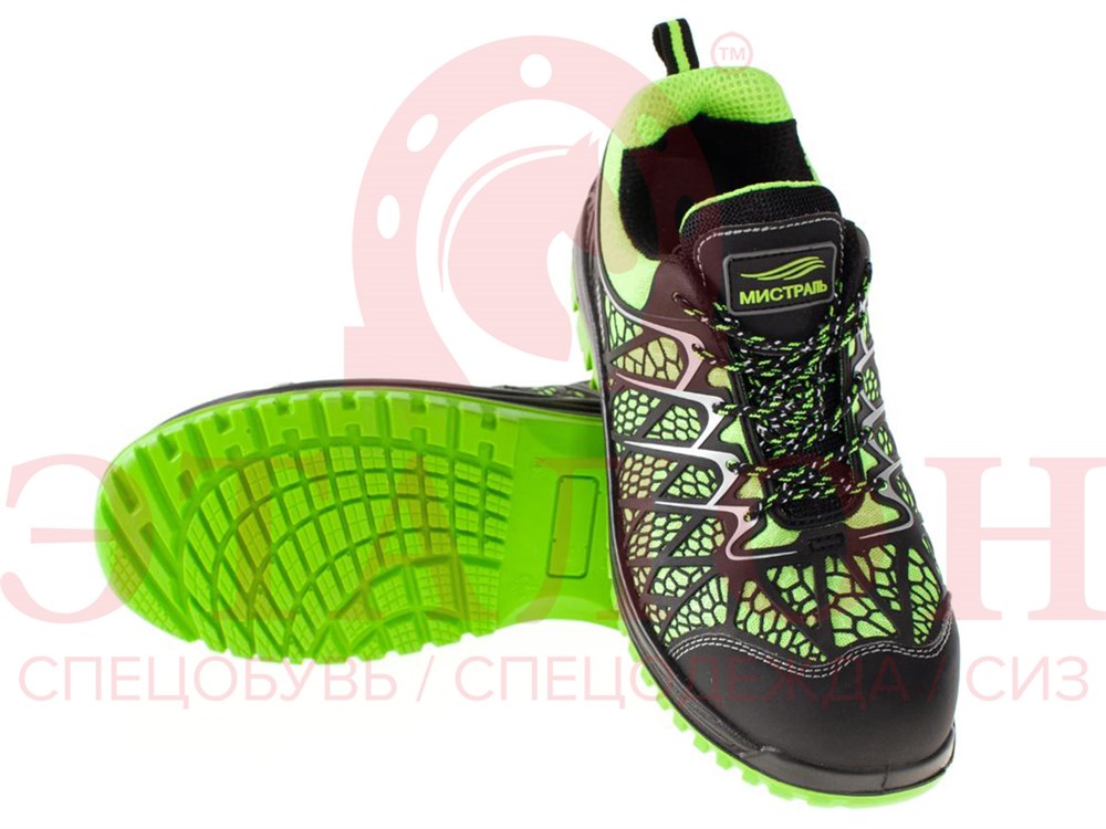 Кроссовки «МИСТРАЛЬ НЕОН» выполнены из дышащего водоотталкивающего трикотажного материала с накладками из ТПУ для дополнительной прочности и защиты. Подкладка кроссовок выполнена из текстильного воздухопроницаемого полотна с крупной ячейкой, что обеспечивает хорошую вентиляцию и комфорт. Подносок кроссовок укреплен и изготовлен из поликарбонатного материала (Мун 200 Дж) для защиты ноги. Подошва кроссовок двуслойная, выполнена из полиуретана и термополиуретана (ПУ-ТПУ) для комбинации комфорта и прочности. Стелька кроссовок антипрокольная, выдерживает нагрузку до 1200Н и обеспечивает защиту от проникновения острых предметов. Для безопасной работы сотрудника в местах с плохим освещением на кроссовках «МИСТРАЛЬ НЕОН» расположены световозвращающие элементы.