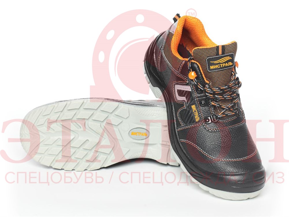 Полуботинки «МИСТРАЛЬ-ULTRA» изготовлены методом литья к заготовке верха обуви. Промежуточный слой подошвы выполнен из полиуретана, ходовой слой из термополиуретана с улучшенным сопротивлением скольжению, стойкостью к деформациям, истиранию. Подошва – двухслойная ПУ-ТПУ устойчива к воздействию нефти, нефтепродуктов, кислот и щелочей концентрации до 20%, повышенных и пониженных температур. Для защиты от ударов в носочной части стопы применяется композитный подносок (Мун 200), имеющий конфигурацию, препятствующую надавливанию верхнего края на стопу и оборудованный прокладкой из полиуретана. Обувь изготавливается с проколозащитными прокладками (стельками) из металла, обеспечивающими защиту от проколов и порезов с сопротивлением сквозному проколу пакета деталей низа обуви не менее 1200 Н.