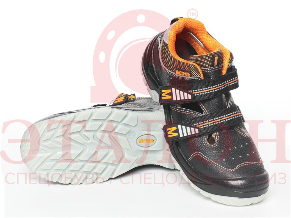 Сандалии «МИСТРАЛЬ-ULTRA» изготовлены методом литья к заготовке верха обуви. В соответствии с комплектацией обуви и замаркированными обозначениями защитных свойств обувь серии «МИСТРАЛЬ-ULTRA» обеспечивает защиту от нефти, нефтепродуктов, механических воздействий, растворов кислот и щелочей концентрации до 20%, и общих производственных загрязнений. Сандалии «МИСТРАЛЬ-ULTRA» с поликарбонатным подноском и антипрокольной металлической стелькой. Верх обуви «МИСТРАЛЬ-ULTRA» – термоустойчивая водоотталкивающая кожа (юфть) толщиной 1,8–2,0 мм. Подошва – двухслойная ПУ-ТПУ, устойчивая к воздействию нефти, нефтепродуктов, кислот и щелочей концентрации до 20%, повышенных и пониженных температур. Верхний слой из полиуретана обладает амортизирующими свойствами, гасит ударные нагрузки, а также придает обуви легкость, комфортность и повышенные теплозащитные свойства. Ходовой слой изготовлен из термопластичного полиуретана с улучшенным сопротивлением скольжению, стойкостью к деформациям, истиранию. Носочная часть имеет дополнительную защиту в виде подлитого носка, предотвращающего механические повреждения обуви Для защиты от ударов в носочной части стопы в обуви серии «МИСТРАЛЬ-ULTRA» применяется композитный подносок (Мун 200), имеющий конфигурацию, препятствующую надавливанию верхнего края на стопу, и оборудованный прокладкой из полиуретана. Класс защиты S3. Сандалии «МИСТРАЛЬ-ULTRA» изготавливаются с проколозащитными прокладками (стельками) из металла, обеспечивающими защиту от проколов и порезов с сопротивлением сквозному проколу пакета деталей низа обуви не менее 1200 Н. Рисунок протектора подошвы обеспечивает хорошую сцепляемость с обледенелыми и замасленными поверхностями (глубина протектора составляет 5,0 мм). Обладает эффектом самоочищения. Объемная колодка специальной конструкции дает возможность работать целый день, не испытывая дискомфорта и усталости. СВП обеспечивает более безопасное использование обуви в темное время суток. Модель подойдет для работы в нефтегазовой, горнодобывающей, энергетической, химической промышленности, на транспорте и в агропромышленном комплексе.