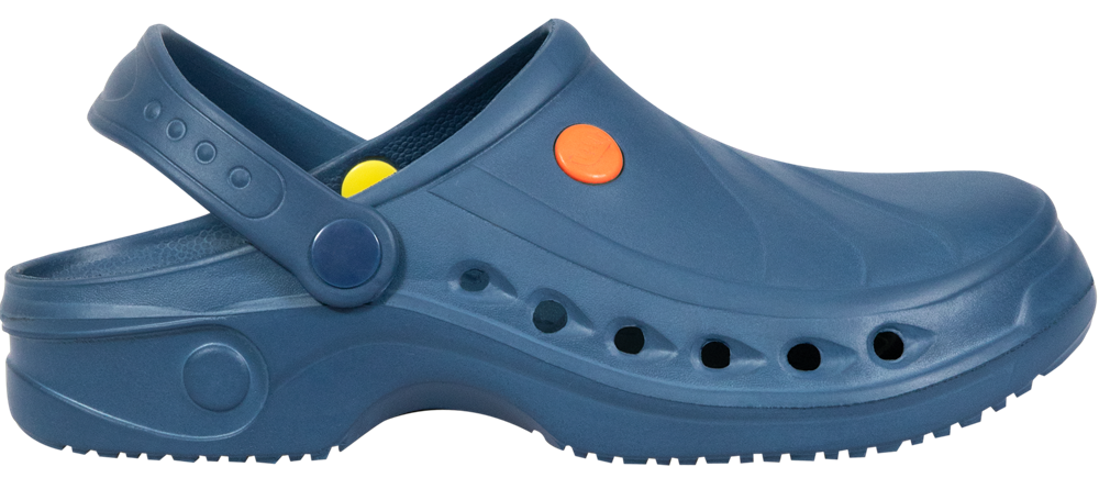 Особенности: Перекидной ремешок. Отверстия в передней части стопы выполняют функцию вентиляции. Уход за моделью можно осуществлять при помощи моющих средств, ультрафиолетом или в машинке при температуре до 40° C. ESD антистатические свойства согласно Европейской Директивы.