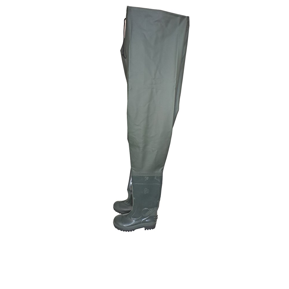 Сапоги регулируются по длине бретелями. Верх изделия герметично соединен с сапогами. Модель изготавливается на базе рабочих сапог. Изделие полностью водонепроницаемо. Для хранения мелких предметов на уровне груди расположен внутренний карман. Наколенники выполенны из винтитола и поролона.