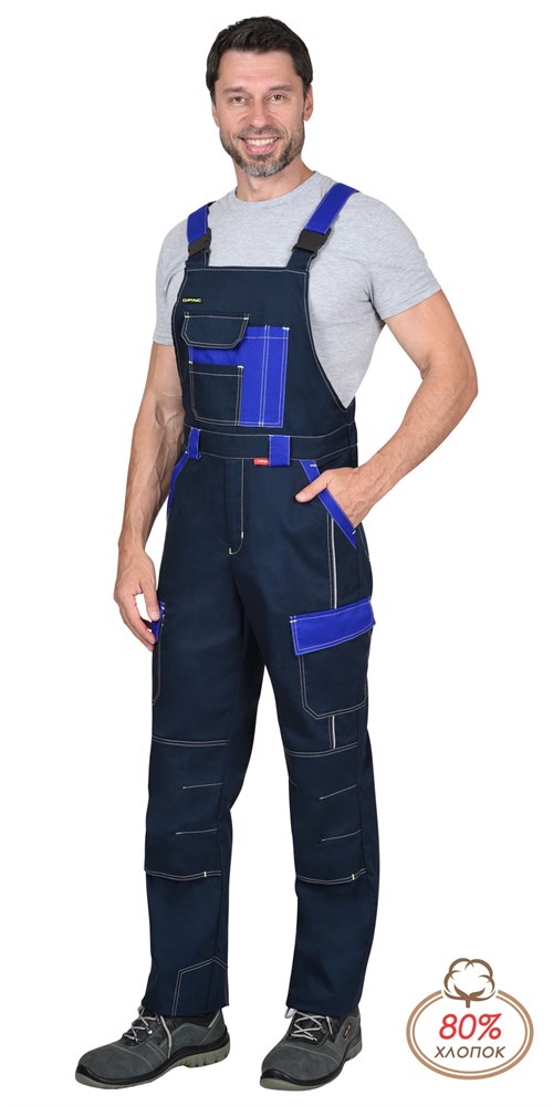 Полукомбинезон СИРИУС-КАРАТ-РОСС темно-синий с васильковым, 80% х/б, пл. 260 г/кв.м