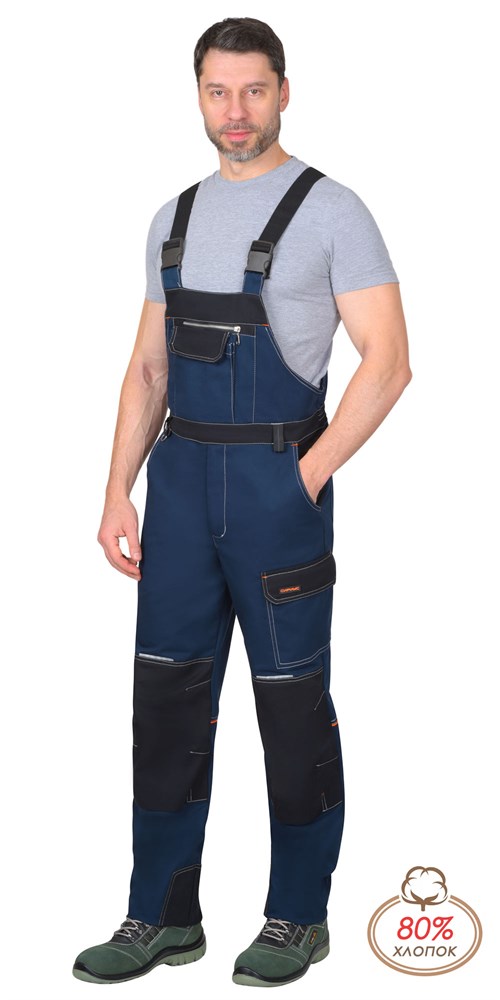 Полукомбинезон СИРИУС-ШАТЛ-РОСС синий с черным, 80% х/б, пл. 260 г/кв.м