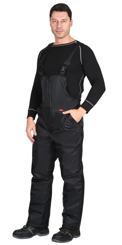 Полукомбинезон с притачной утеплённой подкладкой, с застёжкой на молнию, с боковыми накладными карманами. По спинке частично резинка для лучшего прилегания. Полукомбинезон с бретелями, длина регулируется резинкой и застежкой-фастексом.