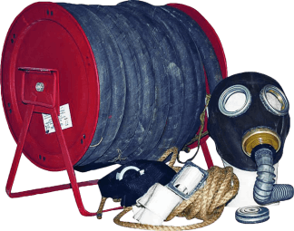 Комплектация противогаза ПШ-1Б: армированный шланг 10м на барабане, 2 маски ШМП.