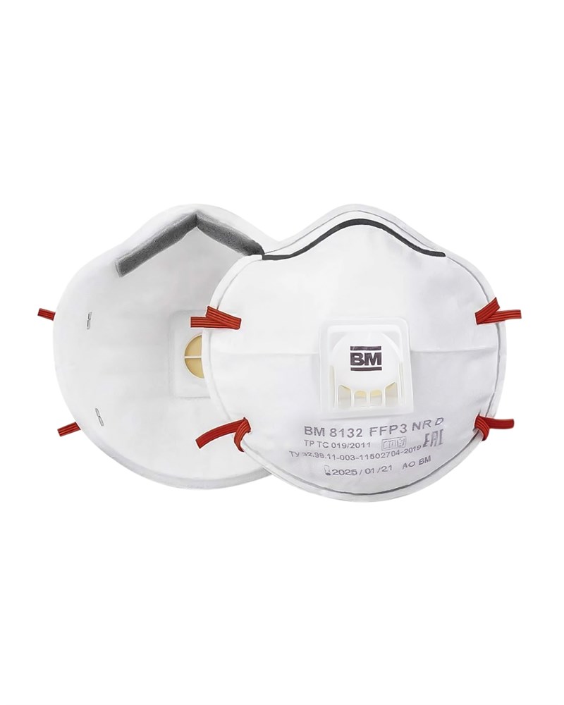 Респираторы ВМ 8132 FFP3 (с клапаном выдоха) предназначены для защиты от вредных аэрозолей: пыли, дыма и тумана. Подходят для работы в условиях высокой концентрации частиц.