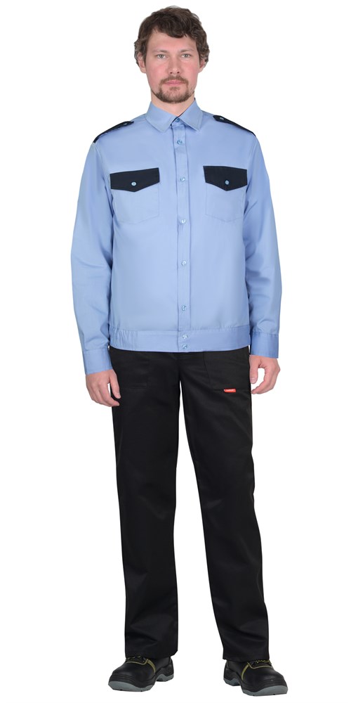 Рубашка Охранника на резинке, длинный рукав, голубая с темно-синим