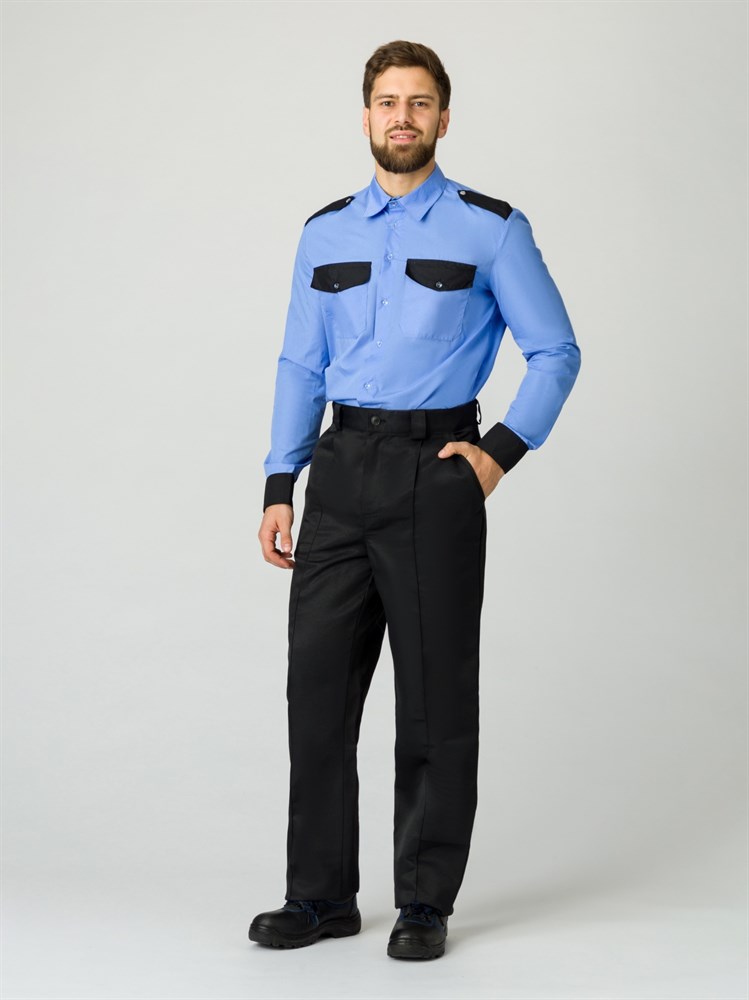 Рубашка охранника с длинным рукавом мужская, ярко-голубой
